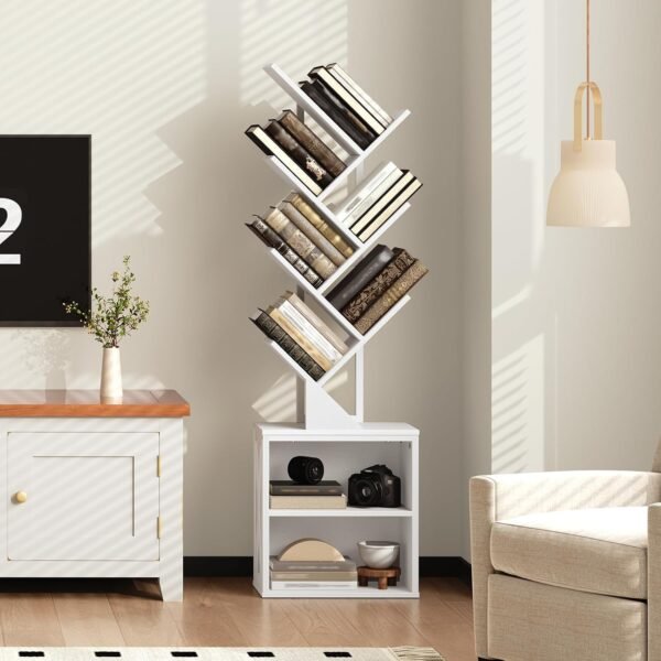 • Vintage Industrial Bookshelf: Constructed with rustic wooden shelves and black metal frames , this bookcase can bring a linear industrial charm and retro warm element to your room. With a neutral color scheme and simple design, the storage shelf can mesh with any home decor. A great display and storage choice for your bedroom, living room, kitchen or office